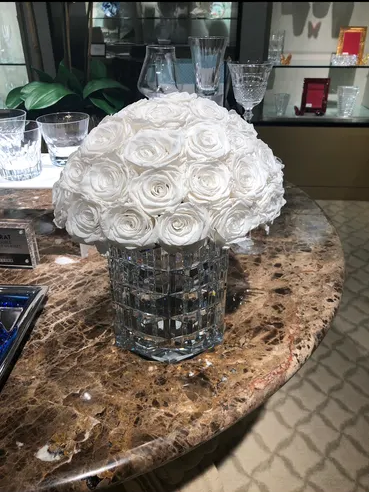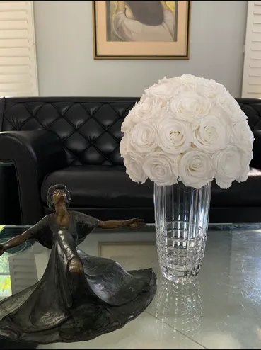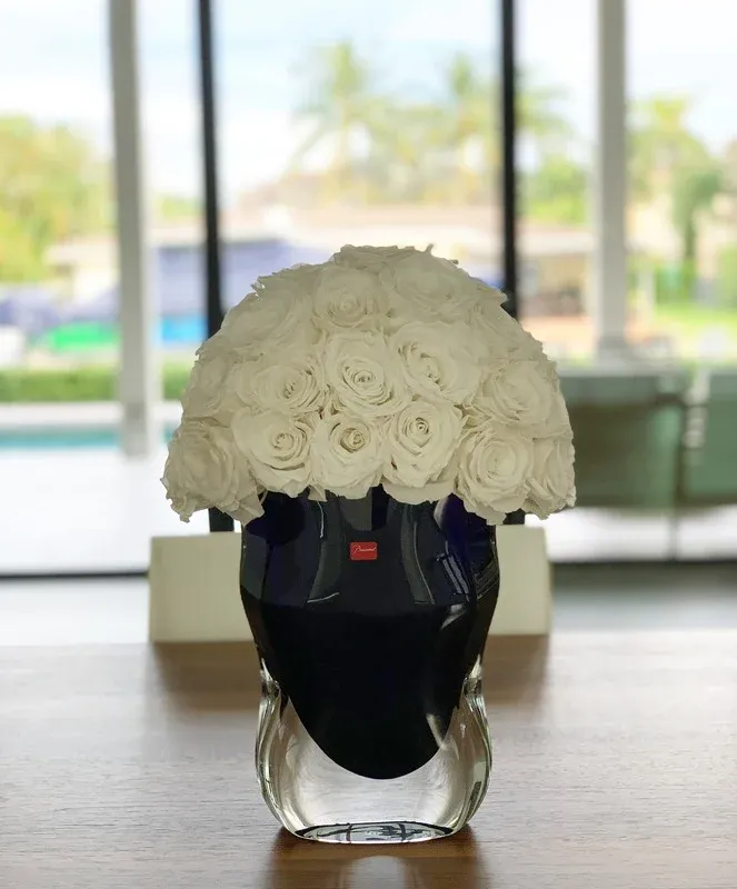 Private Reserve is our most elite commission service — where pieces from your personal collection of Baccarat, Lalique, and designer vessels are curated with bespoke preserved florals. Our white-glove team collects your vase, designs a custom arrangement, and returns it as a collectible object of art, guaranteed to endure for one year. Available exclusively to private clients from Palm Beach to Miami.